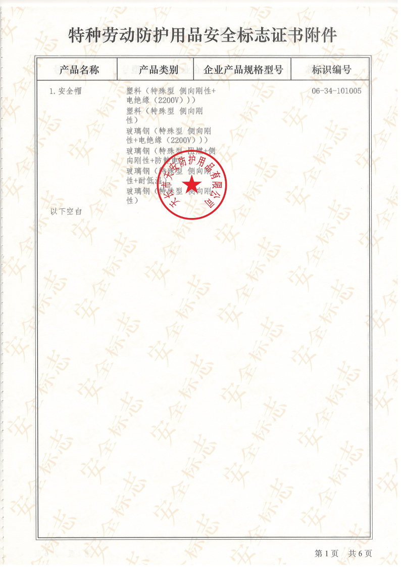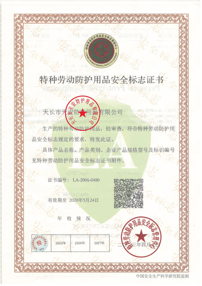 特種勞動防護用品安全標志證書